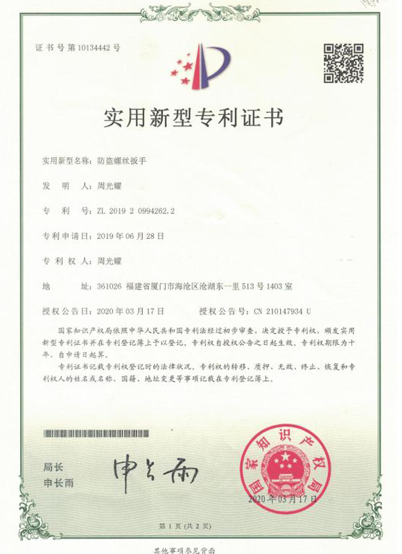 防盜螺絲扳手專(zhuān)利