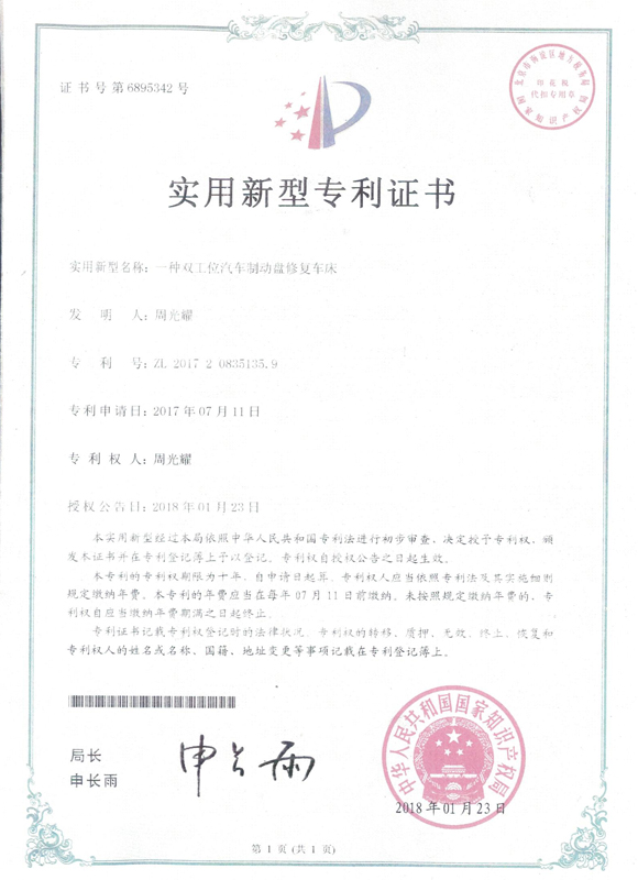 雙工位汽車(chē)制動(dòng)盤(pán)修復(fù)車(chē)床專(zhuān)利