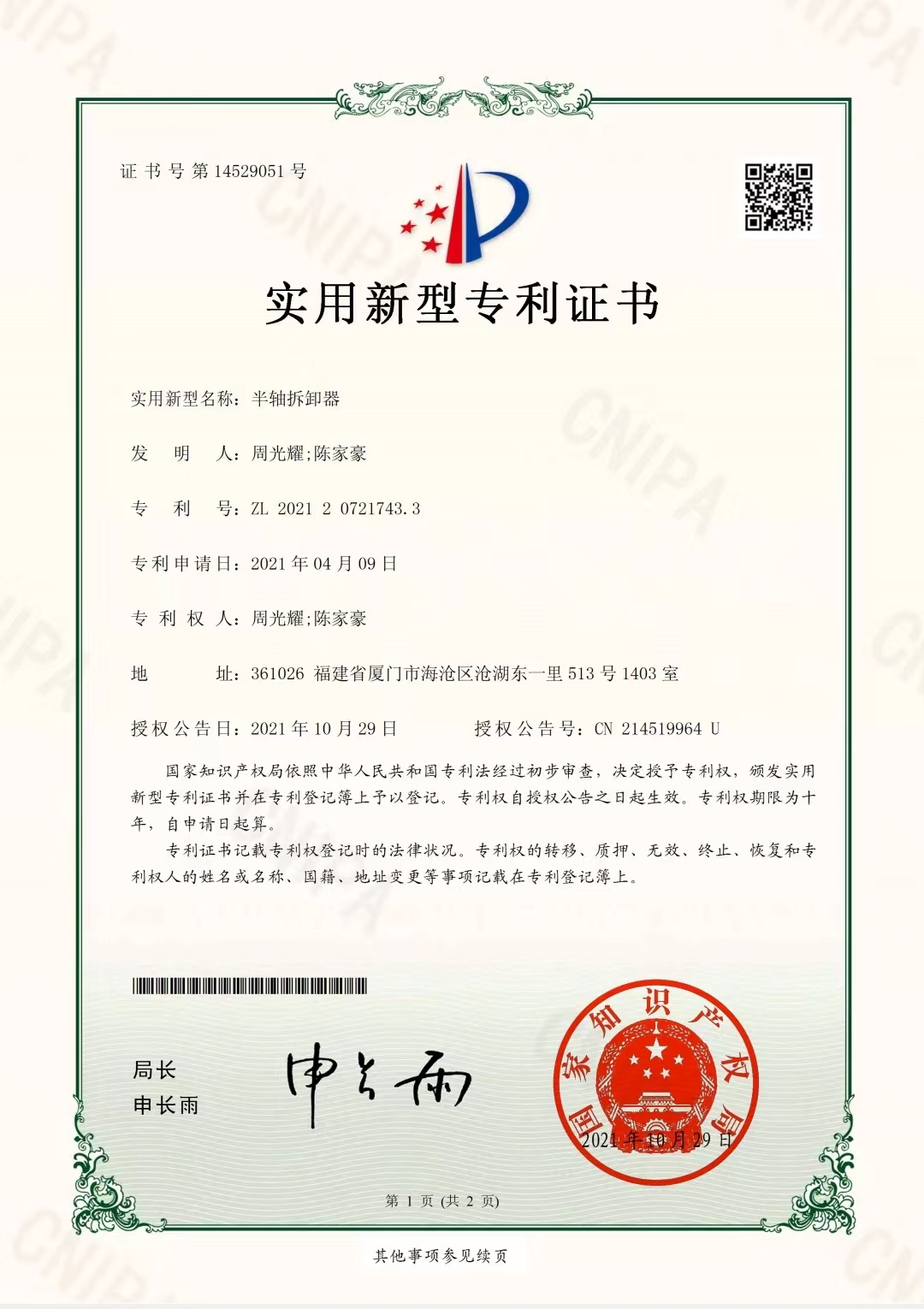 中國(福建)自由貿(mào)易試驗區(qū)廈門片區(qū)青礁大路177-12號(周功機械)