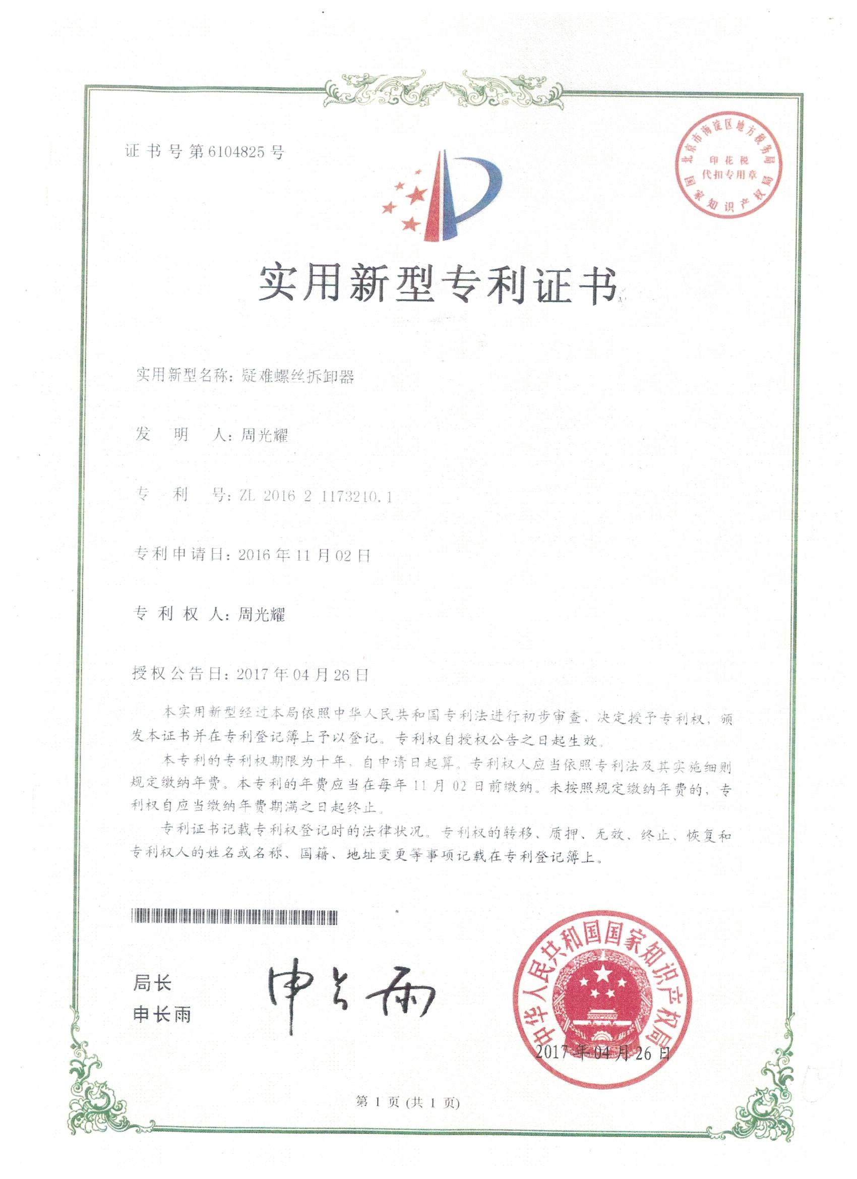 疑難螺絲拆缷器專利