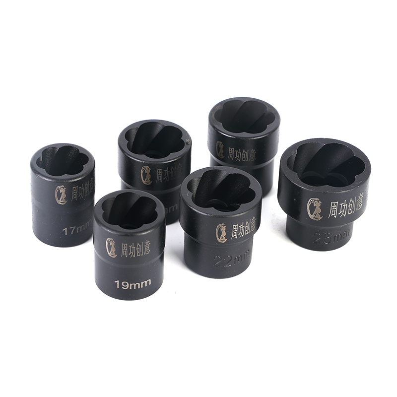 周功疑難螺絲拆卸輔助六件套是周功疑難螺絲拆卸器的輔助工具。本公司根據(jù)市場(chǎng)及客戶要求自主研發(fā)的一種集經(jīng)濟(jì)、高效、實(shí)用新型拆卸汽車(小轎車)防盜螺絲及普通螺絲拆卸專用套筒。周功疑難螺絲拆卸八件套包含17-26珞鉬鋼反牙套筒、可伸縮扳手。路虎專用套筒、市面上的螺絲如平面帶凹槽、內(nèi)置式帶花鍵的、冒式防盜螺絲或普通螺絲外圓滑牙就用相對(duì)應(yīng)的套筒,輕松搞定。