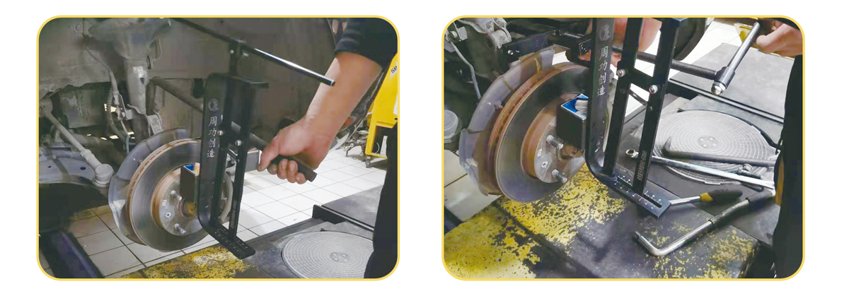 周功1=1杠桿式外傾角校正儀是本公司根據(jù)市場及客戶的需求,自主研制的專利產(chǎn)品,是一種集輕便、高效、實用新型做汽車(小轎車)四輪定位專用工具。如麥弗遜懸結(jié)構(gòu)做定位主要靠換偏心螺絲,偏心螺絲是將原裝進(jìn)口或原車原裝螺絲換成小一號的國產(chǎn)普通螺絲,安全系數(shù)大大降低?,F(xiàn)在由周功發(fā)明的高精準(zhǔn)1=1杠桿式外傾角校正儀,速度比換偏心螺絲更快、更精準(zhǔn)、更安全。